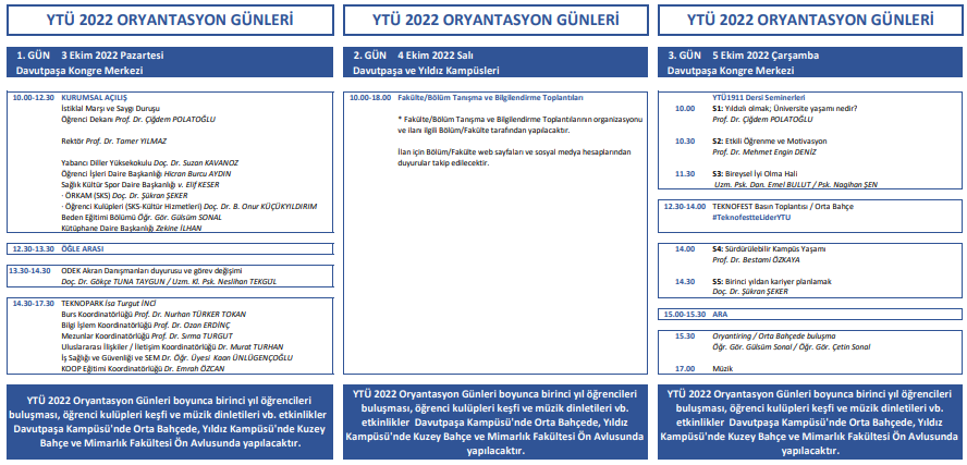 1. Sınıflar Oryantasyon programımız şu şekildedir;